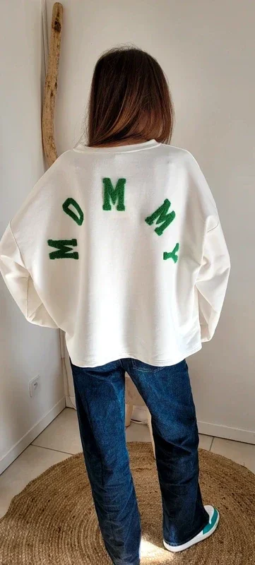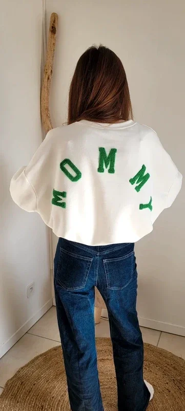 Sweat léger Mommy 💚 Inscription dos Mommy vert en éponge Matière: 65% Coton 35% Polyester 📍