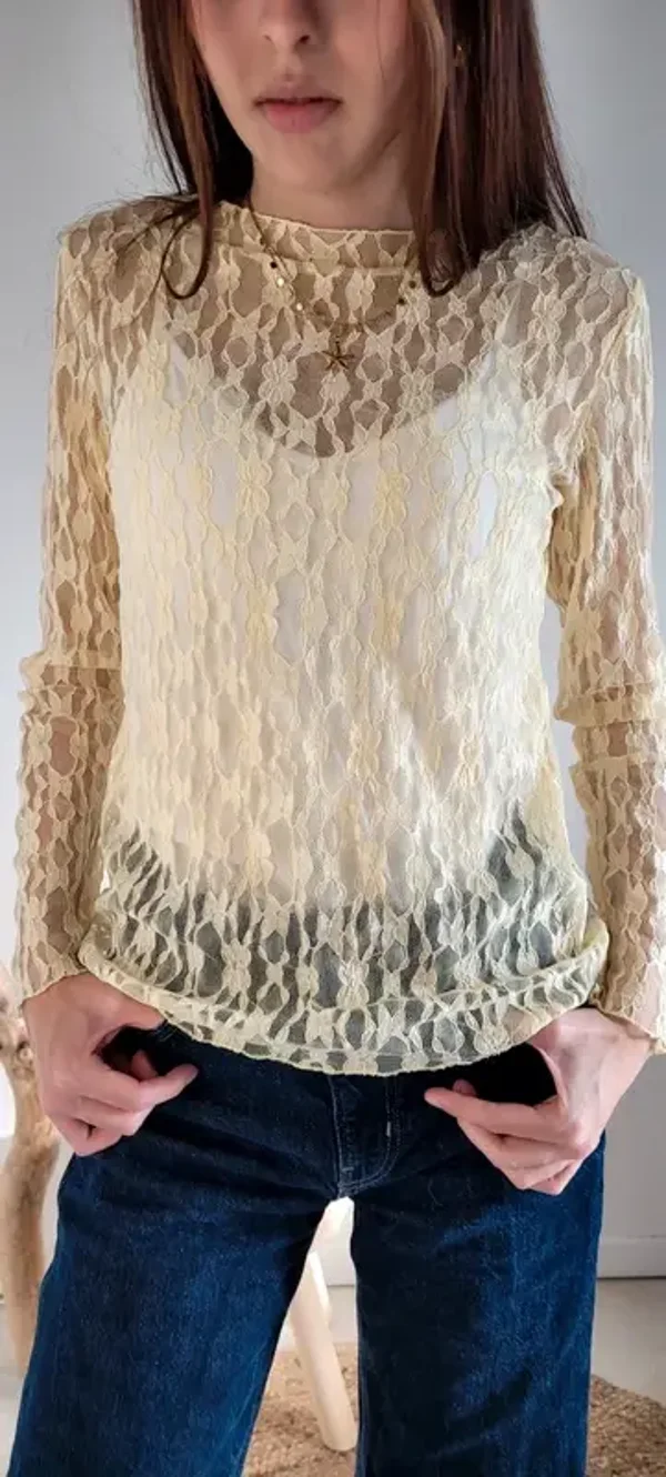 Top dentelle manches longues dentelle jaune 🌼